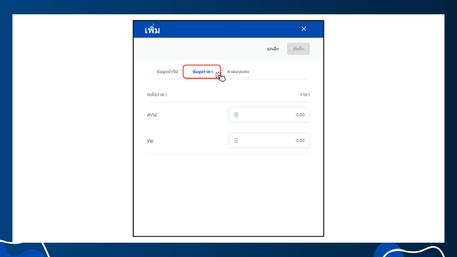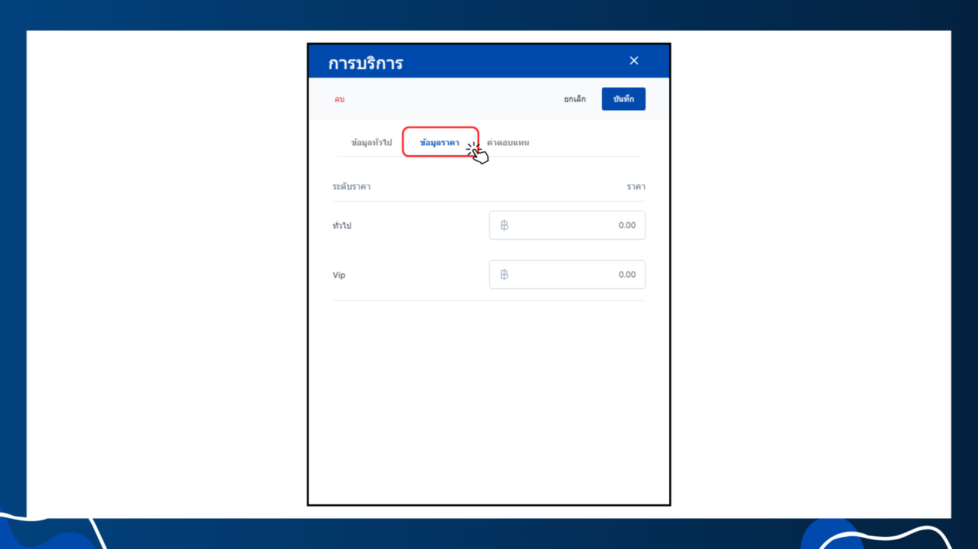 ข้อมูลราคา: กำหนดราคาได้ทั้งแบบทั่วไป หรือแบบ VIP
