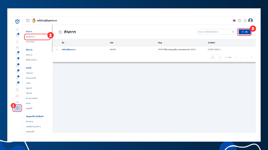 - เลือกเมนู กิจการ > ข้อมูลกิจการ