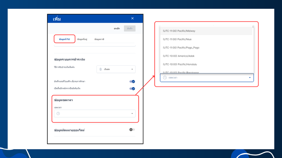 - ข้อมูลขอบเขตเวลา: สามารถเลือกเวลาสำหรับสาขานี้ได้
