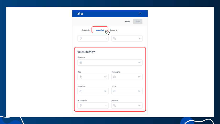 - ข้อมูลที่อยู่กิจการ