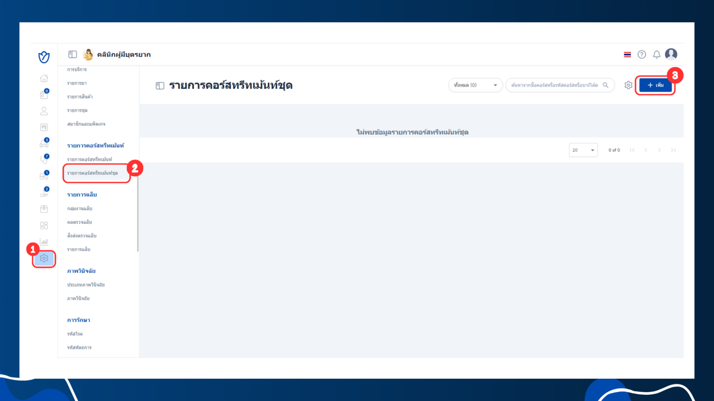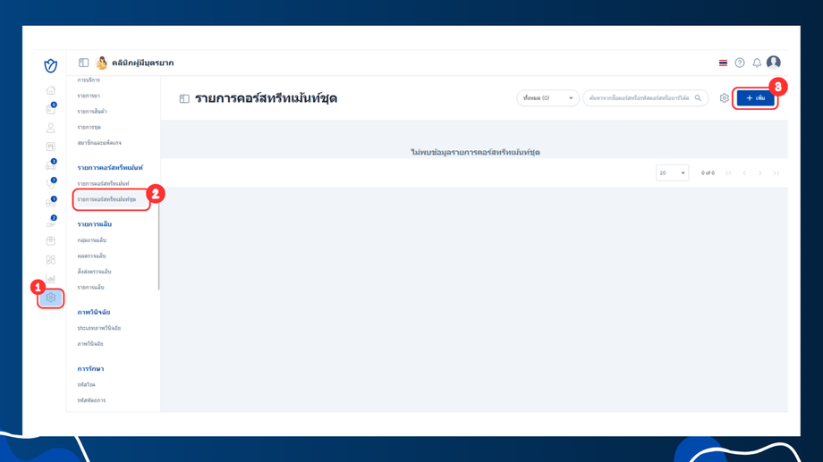 เลือก "รายการคอร์สทรีทเม้นท์" > "รายการคอร์สทรีทเม้นท์ชุด"