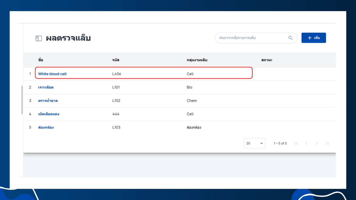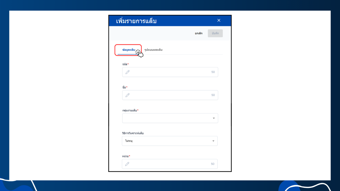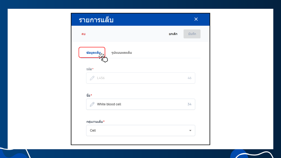 - กลุ่มงานแล็บ: เลือกกลุ่มงานแล็บที่เกี่ยวข้อง
