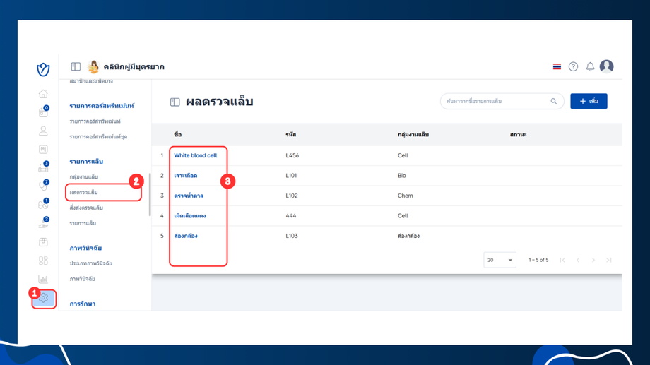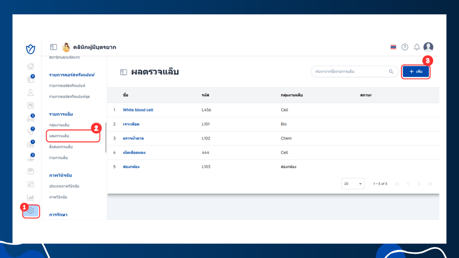 การเพิ่มและแก้ไขผลตรวจแล็บสามารถทำได้ตามขั้นตอนดังนี้: