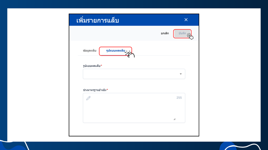 - กรอกข้อมูลในหน้าเพิ่มผลตรวจแล็บ: