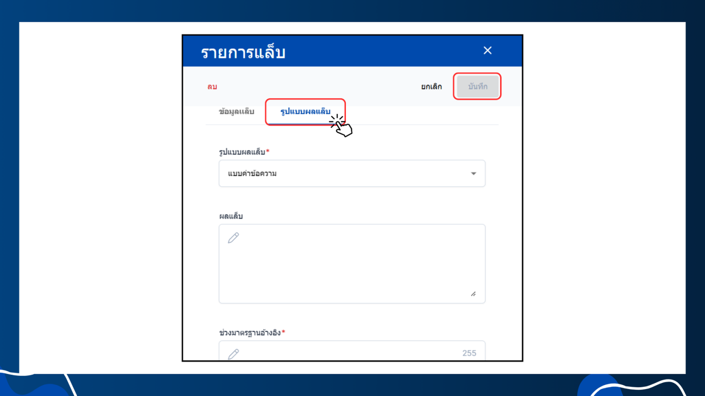 - คลิกที่รูปแบบผลแล็บ แก้ไขที่ต้องการ