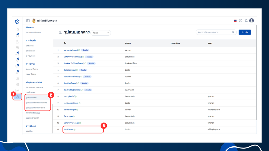 - เลือกรูปแบบเอกสารหรือรูปแปบเอกสารทางการแพทย์