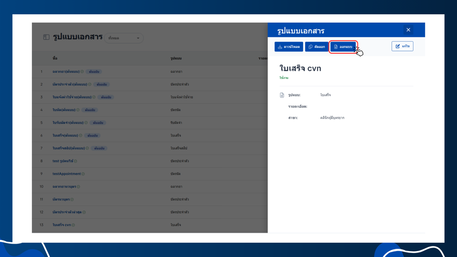 - เลือกรูปแบบใบเสร็จที่ต้องการจากนั้นคลิก
