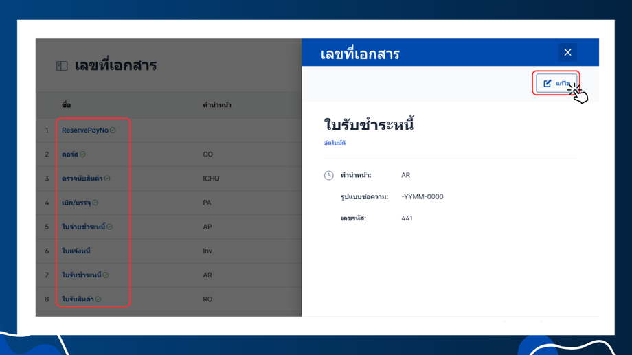 การแก้ไขข้อมูลเลขที่เอกสาร