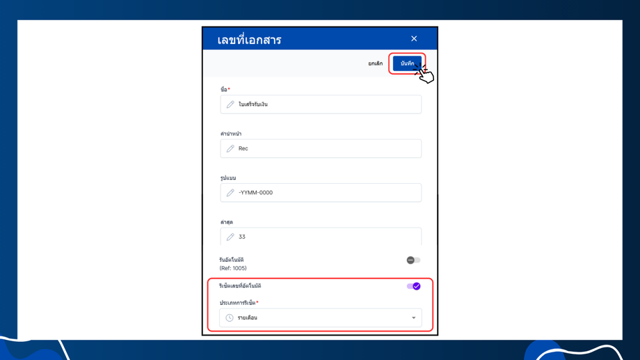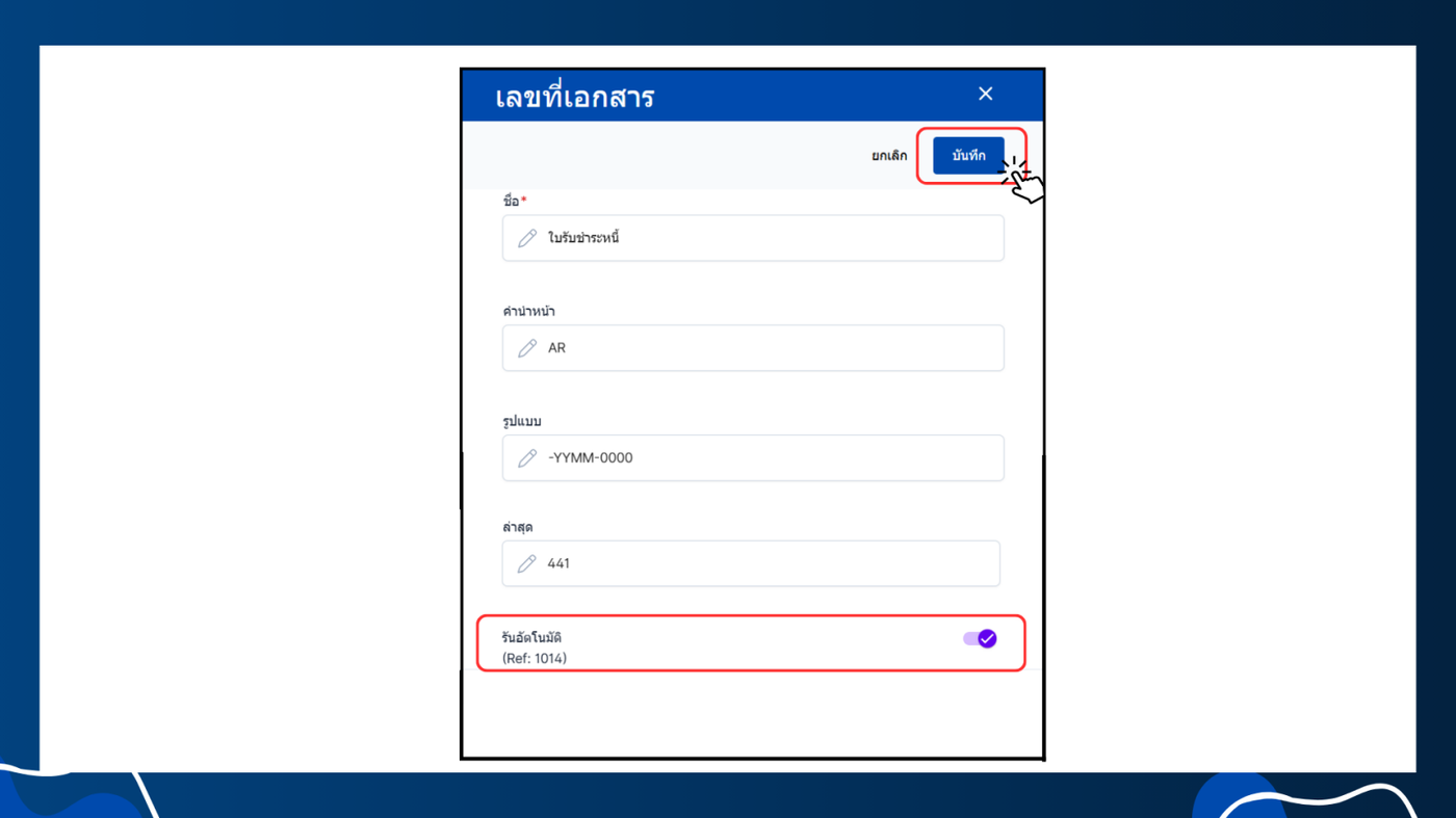 - ช่องล่าสุดจะเป็นการรันเลขที่เอกสารปัจจุบัน