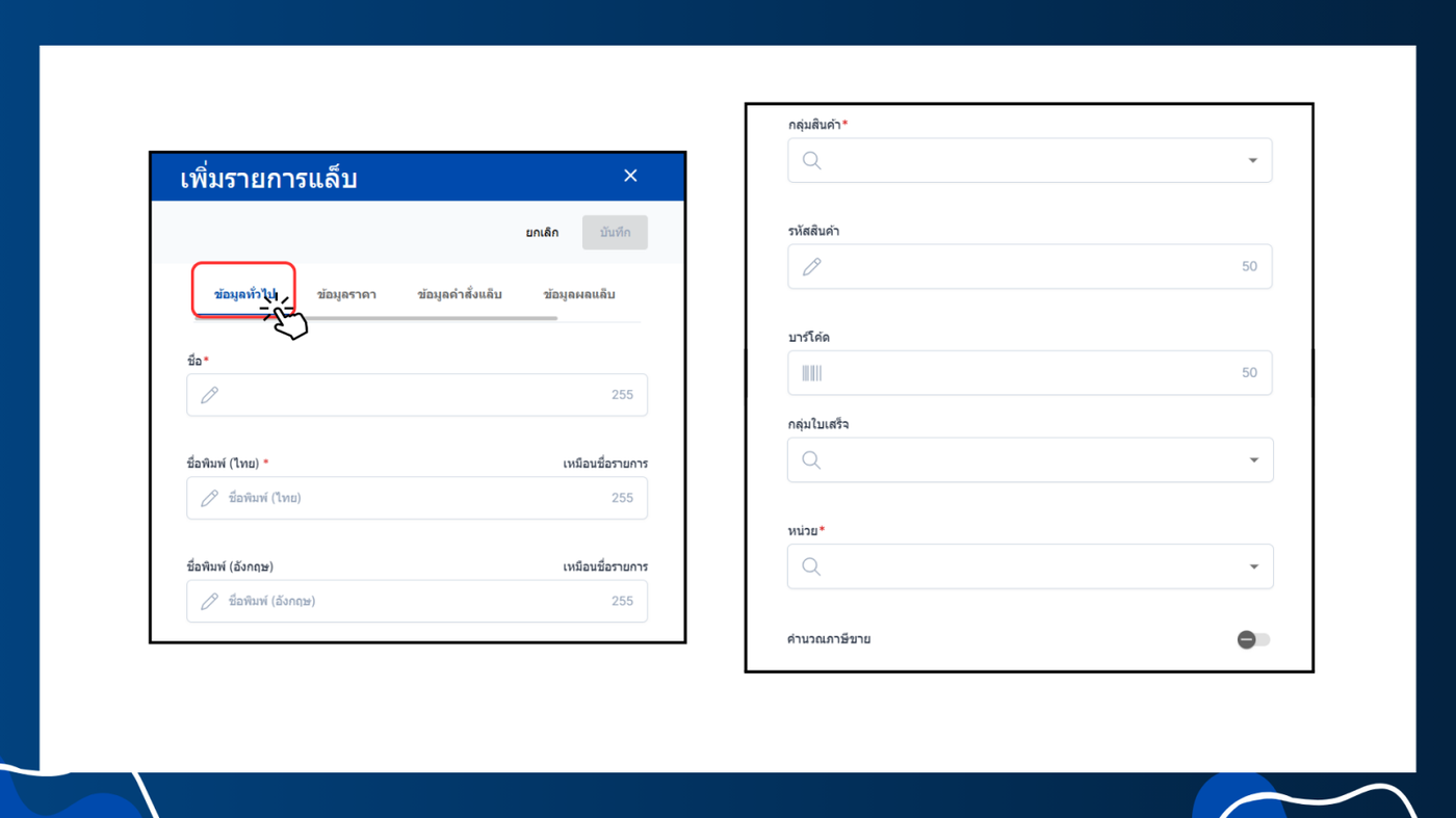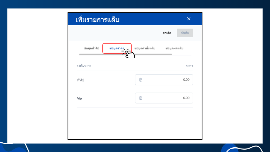 เมื่อกรอกข้อมูลครบถ้วนแล้ว: คลิก "บันทึก" เพื่อบันทึกข้อมูล