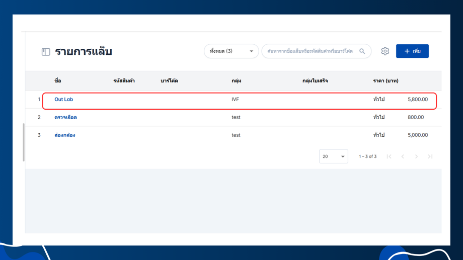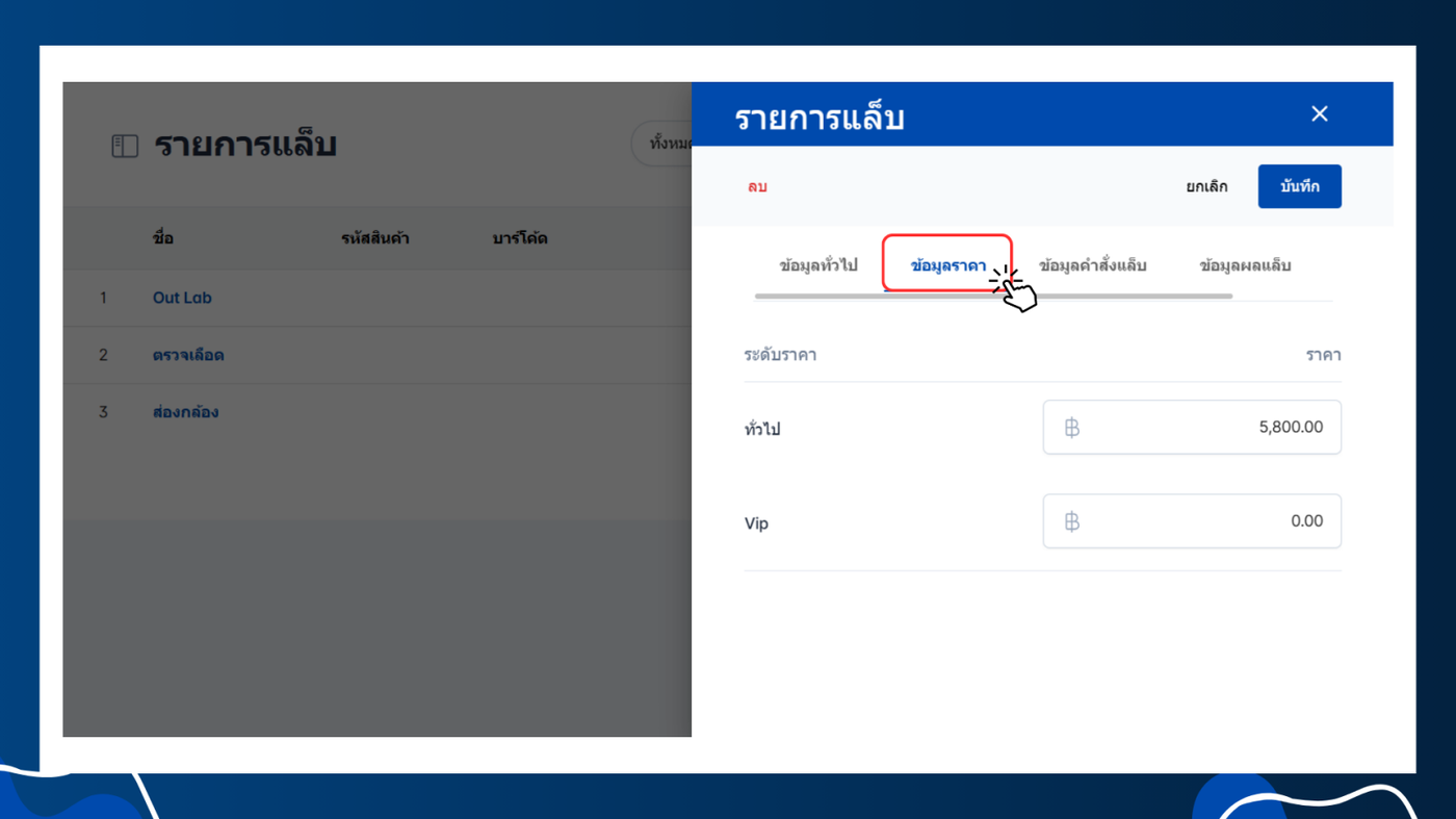 ข้อมูลราคา: กำหนดราคาแล็บตามประเภท