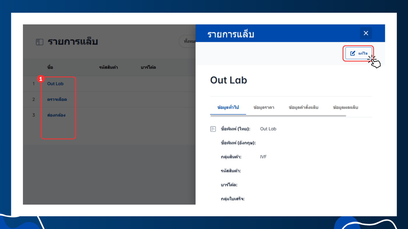 - เลือกรายการแล็บที่ต้องการแก้ไข