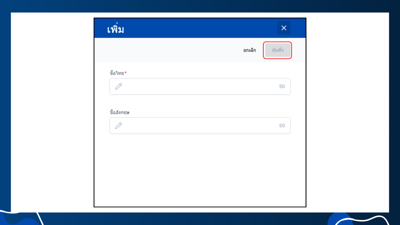 - เมื่อกรอกข้อมูลเสร็จแล้ว คลิก "บันทึก"