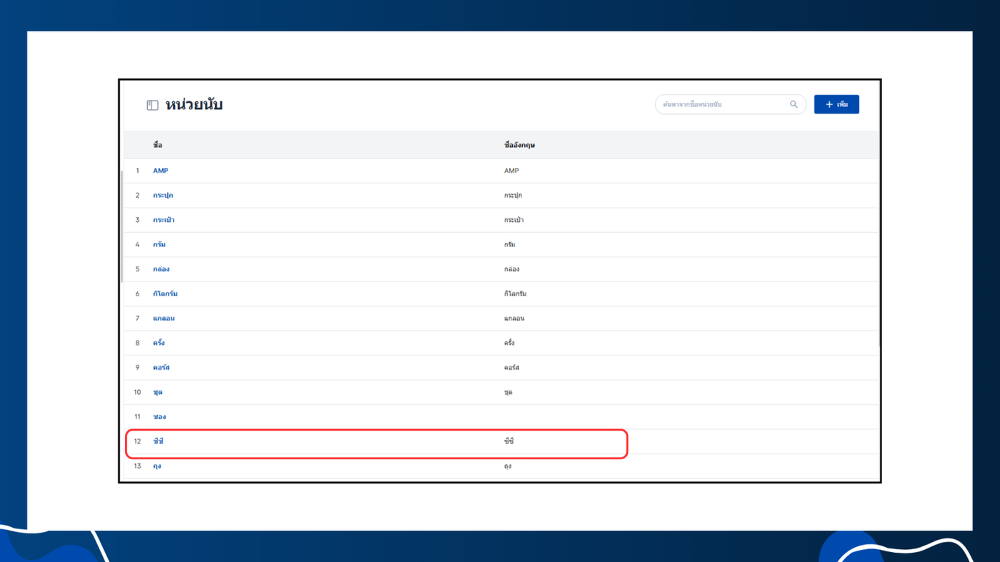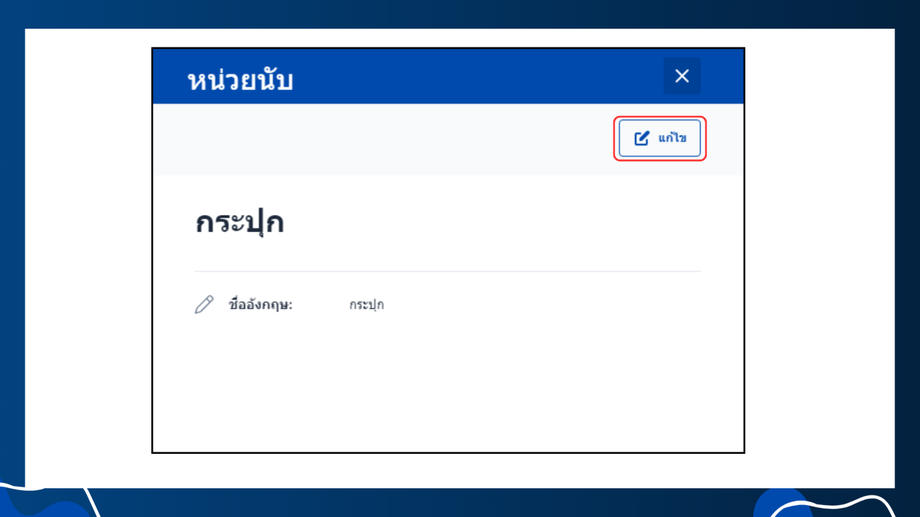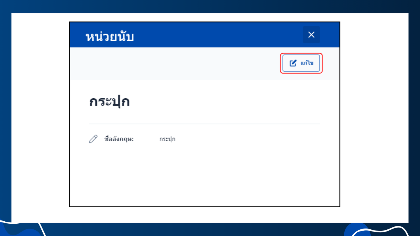 - เลือกหน่วยนับที่ต้องการแก้ไข
