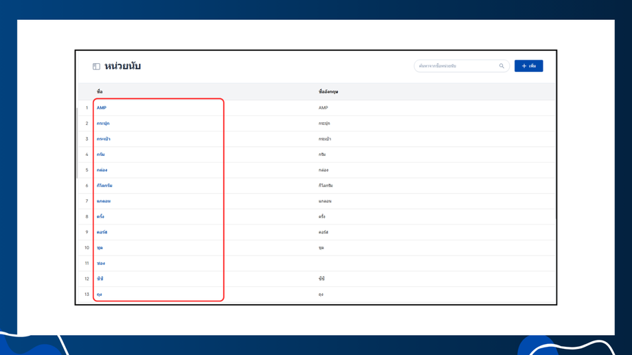- ผู้ใช้งานจะเข้าสู่หน้าเพิ่มหน่วยนับ