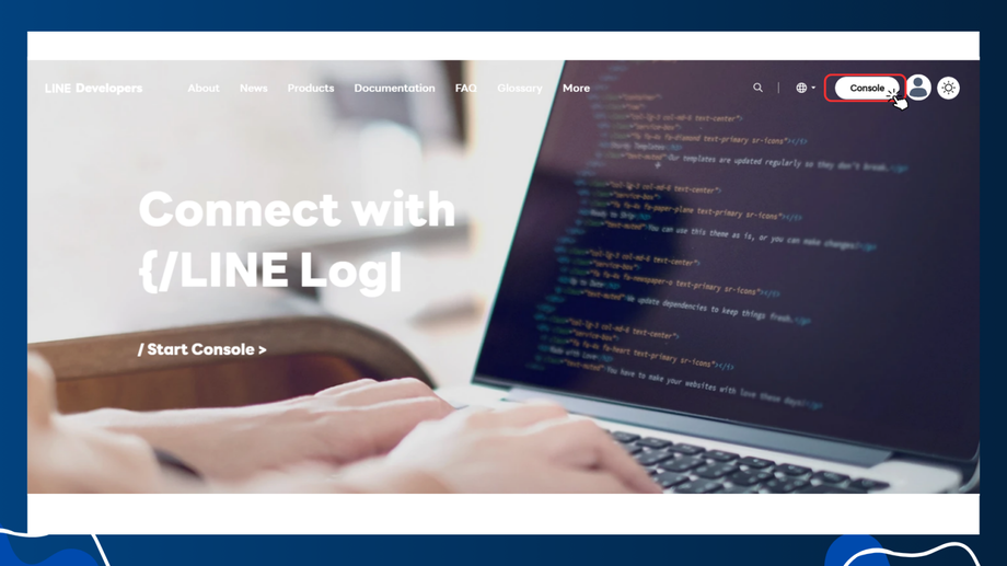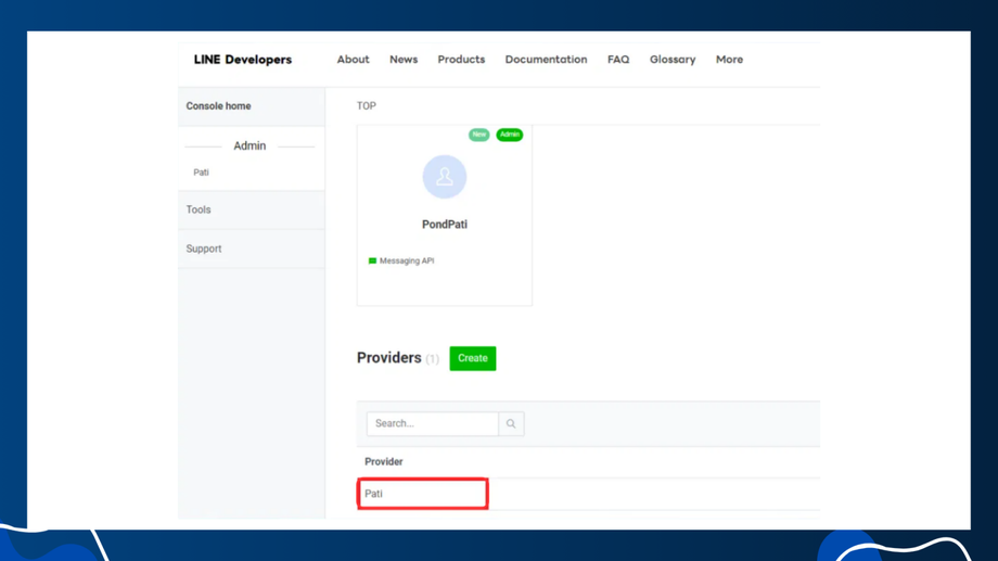 ผู้ใช้งานจะเข้าสู่หน้าเว็บของ Line Developers จากคลิก Console ที่มุมขวาบน