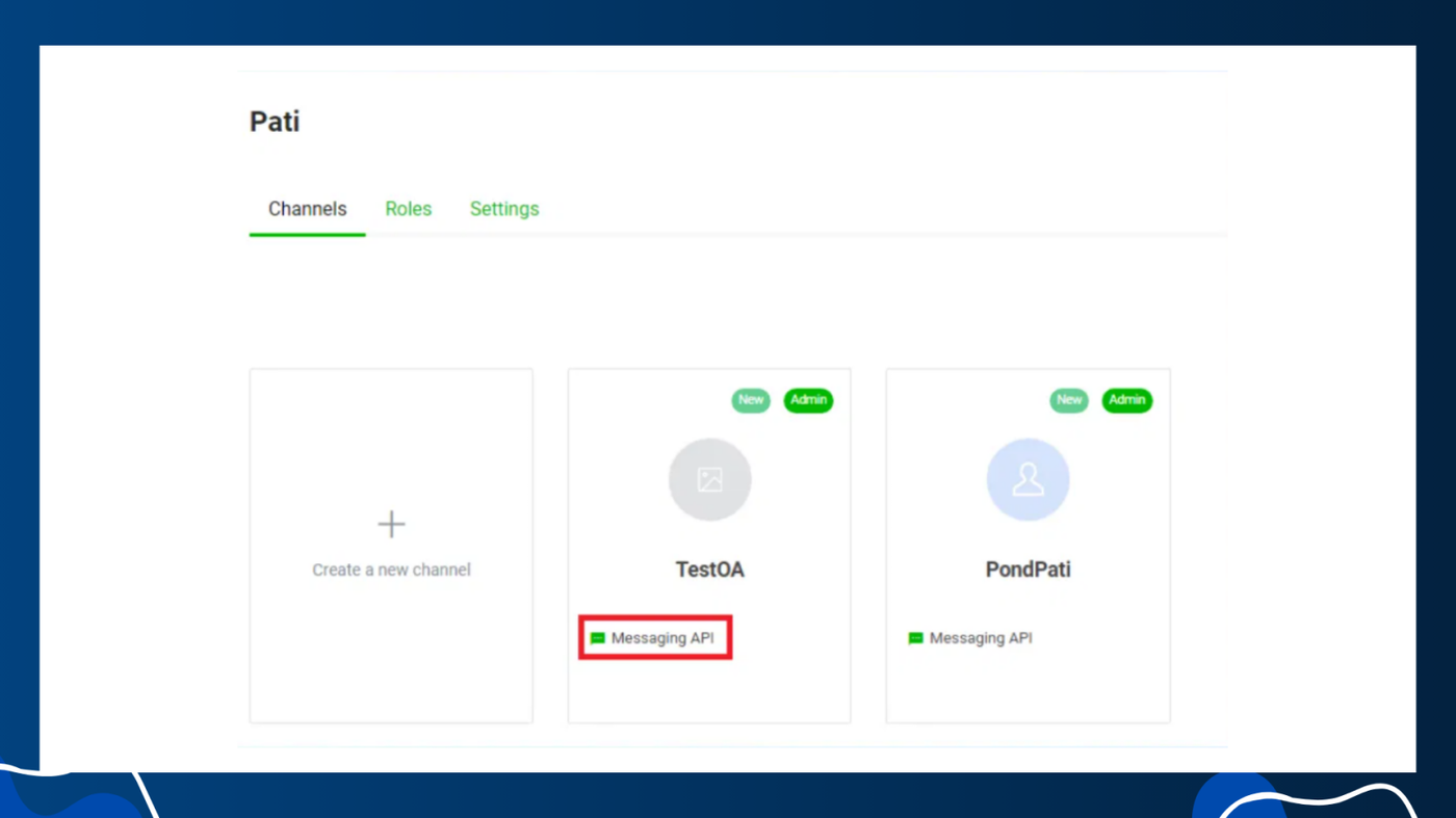 เลือกChanelที่ต้องการเชื่อมต่อและคลิกที่ Messaging API