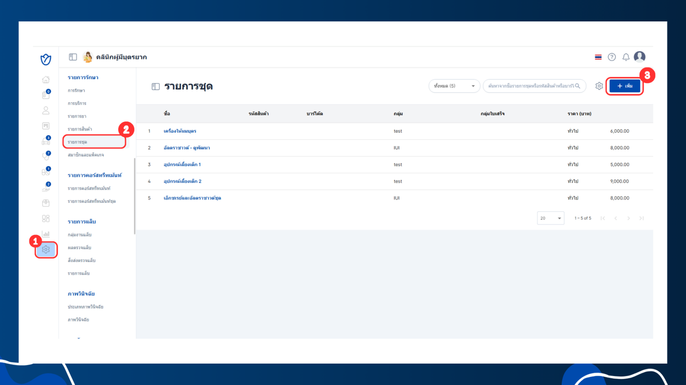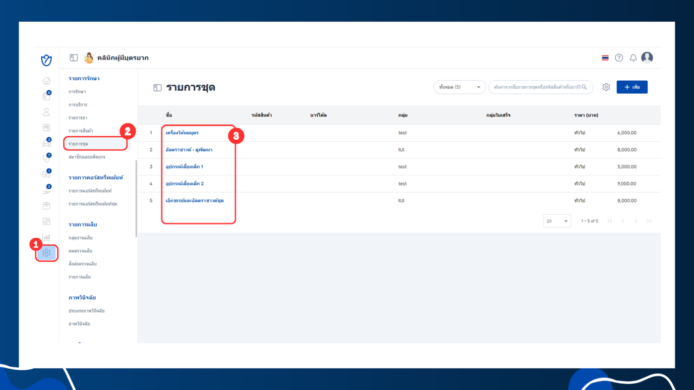 ทำให้การรวมสินค้าและการตั้งราคาเป็นชุดสามารถทำได้ง่ายและรวดเร็ว เพื่อความสะดวกในการขายและการบริหารจัดการ. การตั้งค่ารายการชุดช่วยให้คุณสามารถรวมสินค้าหรือยาหลายรายการเข้าด้วยกันเป็น 1 รายการชุด เพื่อให้การจัดการสะดวกขึ้น