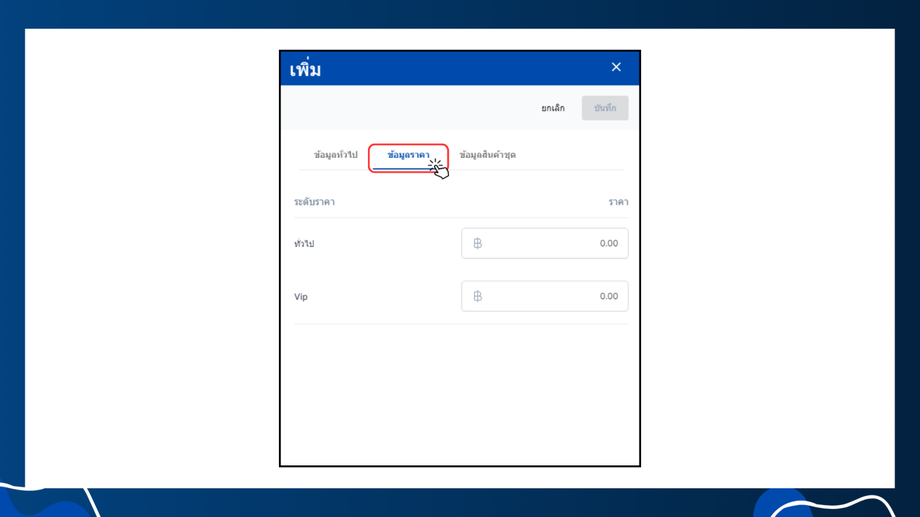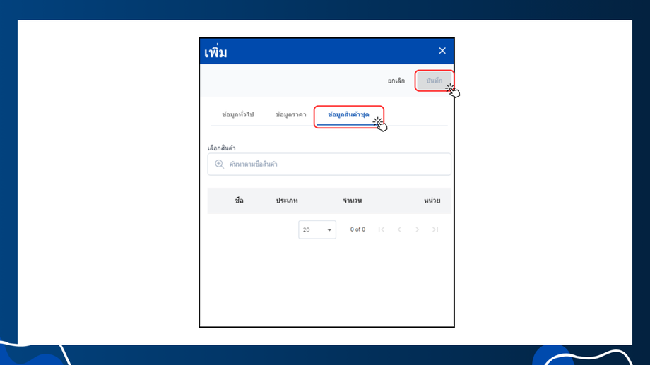 - เมื่อกรอกข้อมูลครบถ้วนแล้ว คลิก "บันทึก" เพื่อบันทึกข้อมูล