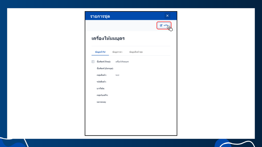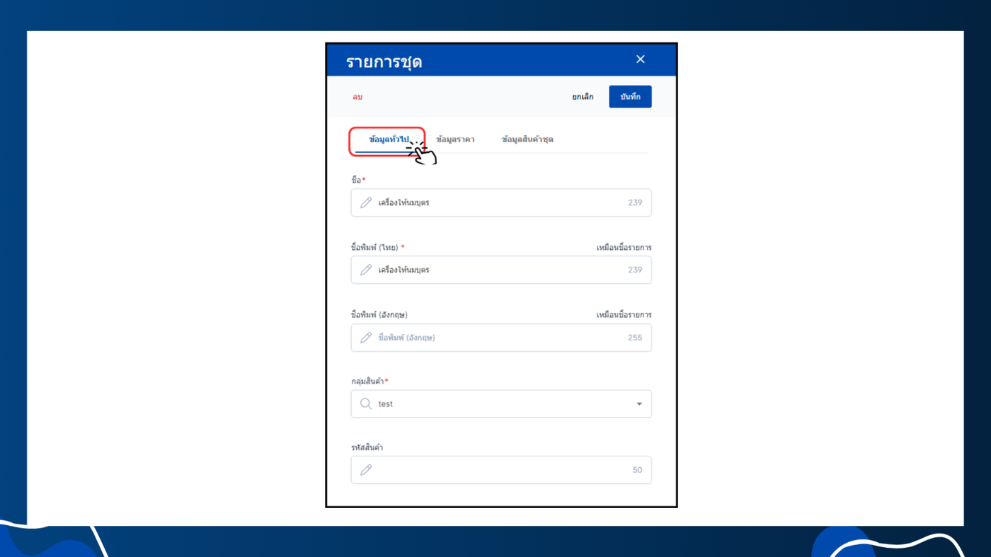 - ข้อมูลทั่วไป: แก้ไขชื่อชุด, รหัสชุด และรายละเอียดอื่นๆ