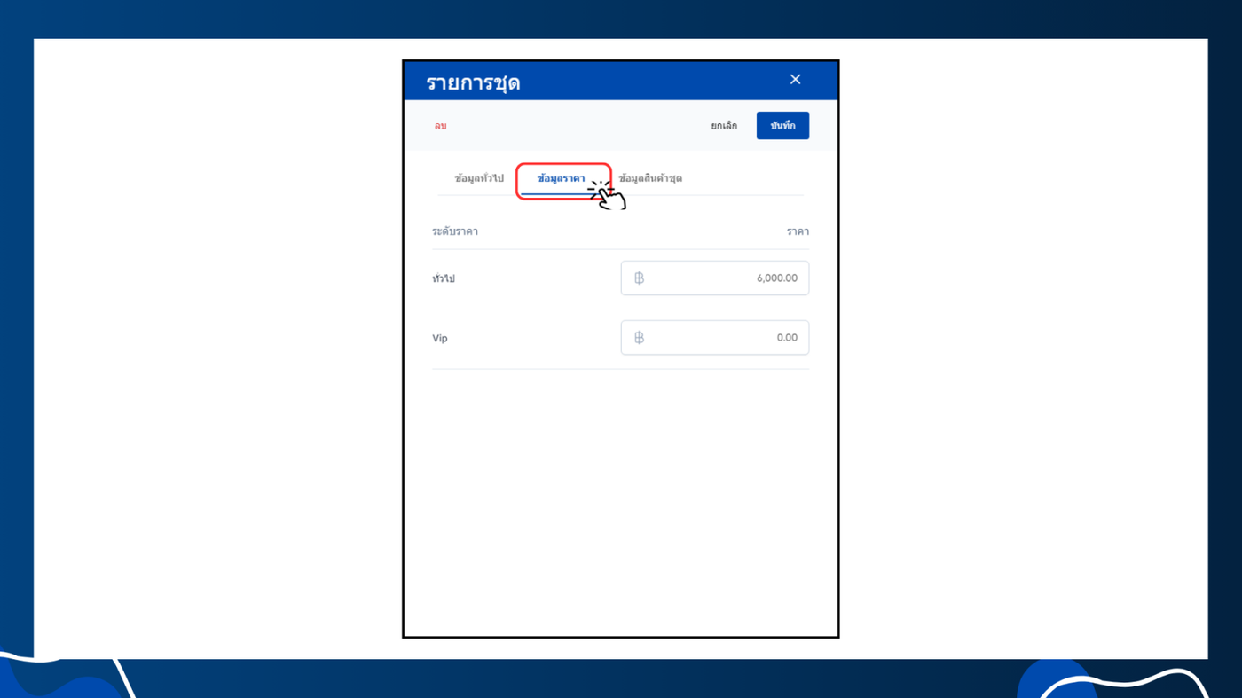 - ข้อมูลราคา: กำหนดราคาได้ทั้งแบบ ทั่วไป และ VIP ตามที่ต้องการ