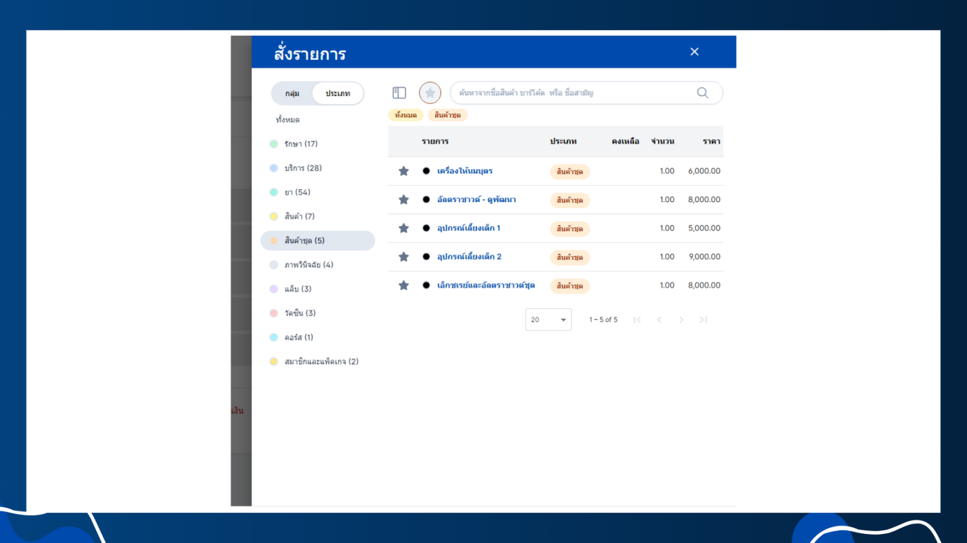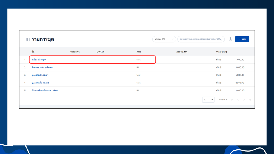 - สามารถเลือกสินค้าหลายรายการมารวมกันเป็นชุด