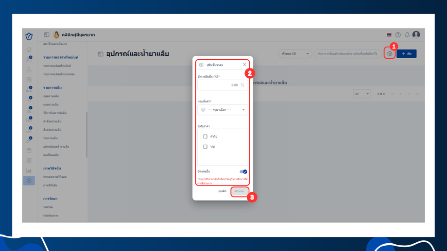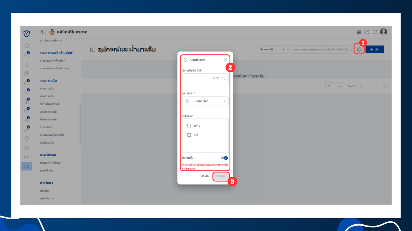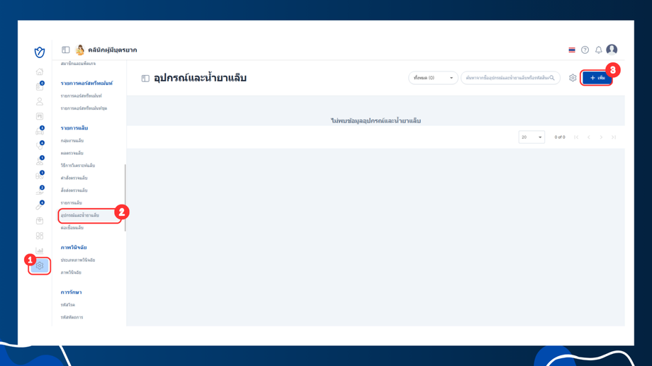 การเพิ่มรายการอุปกรณ์และน้ำยาแล็บ