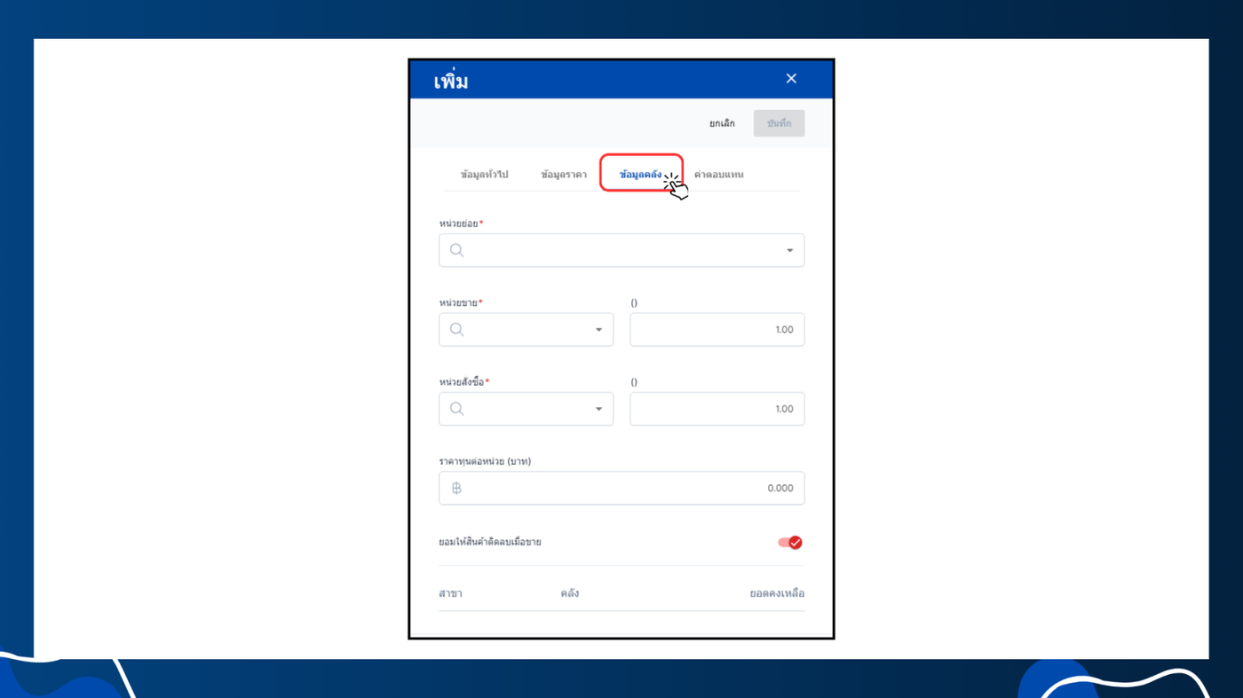 - สามารถเปิด/ปิด ยอมให้สินค้าติดลบเมื่อขายได้