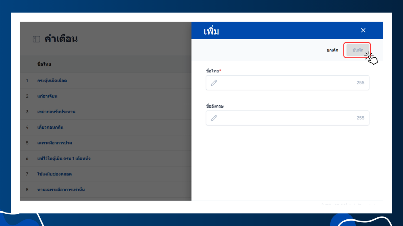 ข้อมูลที่มีสัญลักษณ์ * คือข้อมูลที่จำเป็นต้องกรอกเพื่อบันทึกข้อมูล