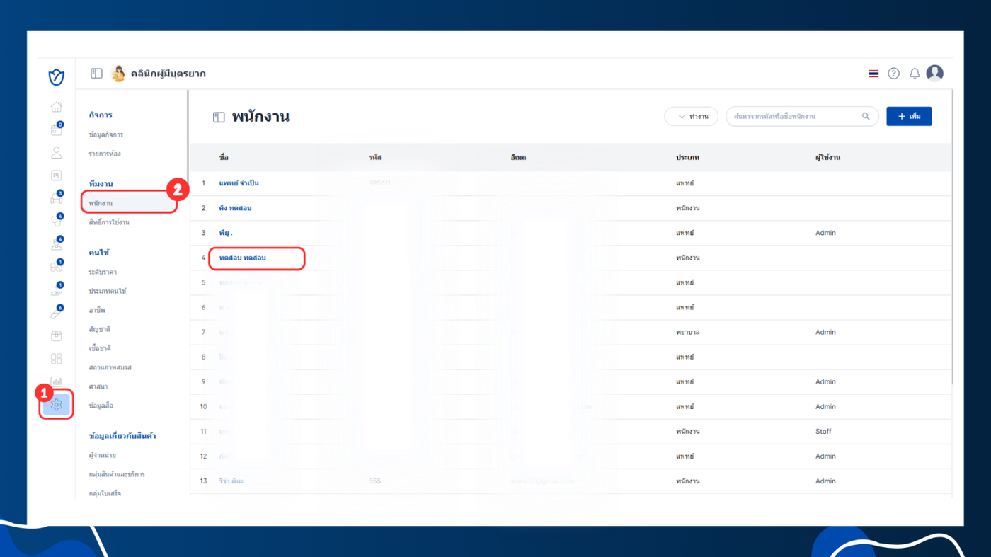 เลือกพนักงานที่ต้องการเพิ่มเป็นผู้ใช้งาน