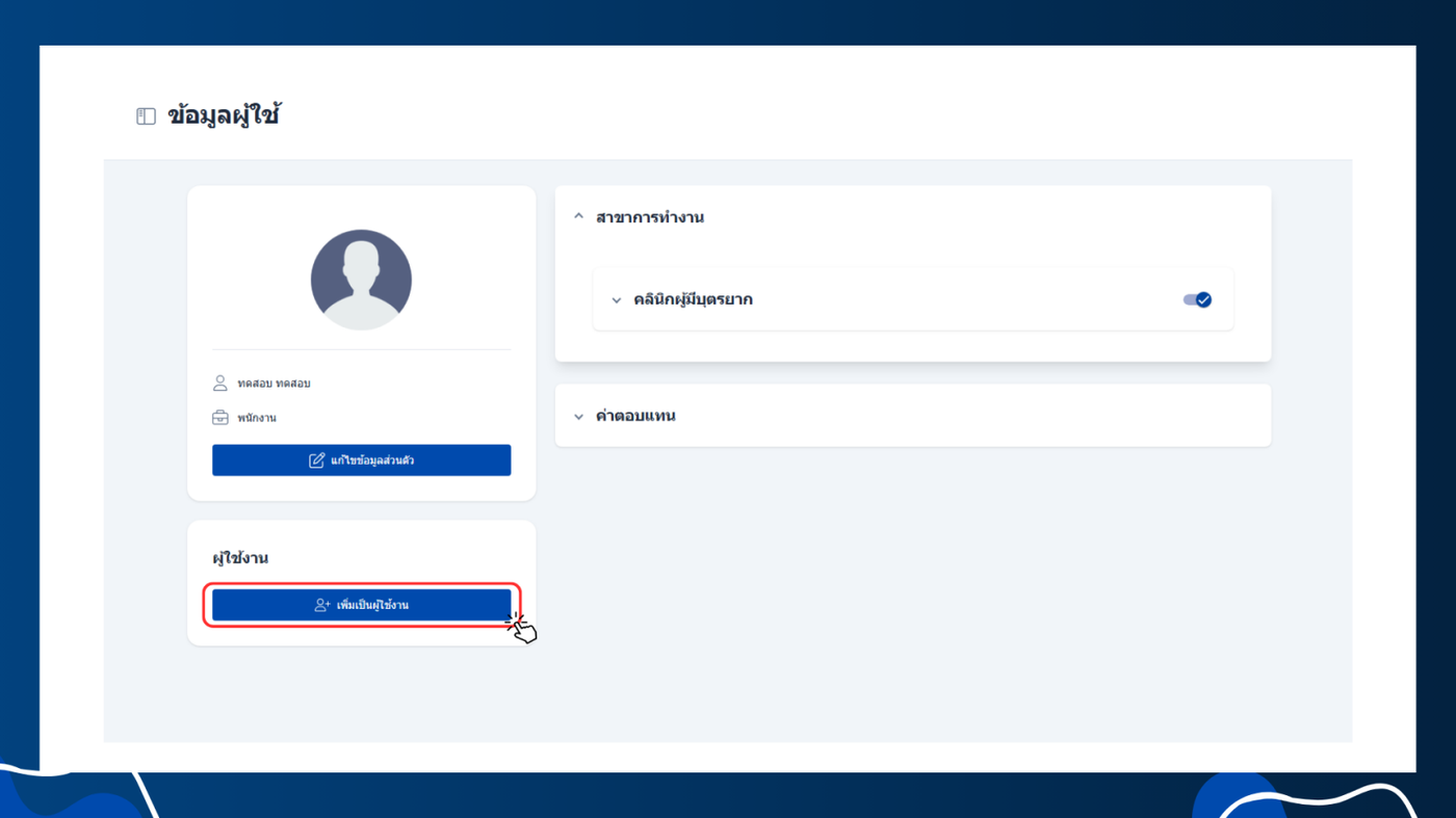 เมื่อเลือกพนักงานแล้ว ให้คลิก "เพิ่มเป็นผู้ใช้งาน"