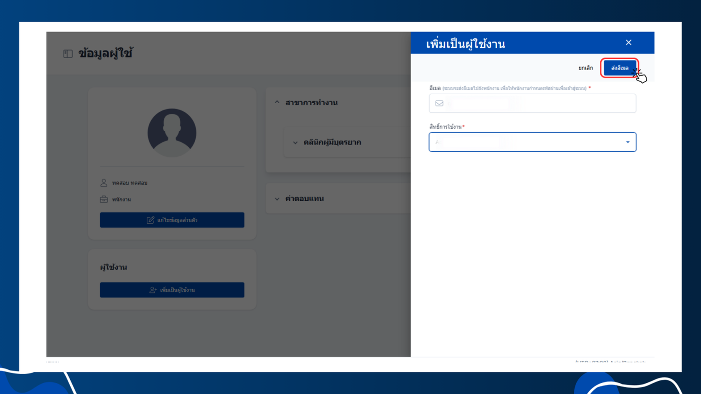 หลังจากกรอกข้อมูลครบถ้วนแล้ว คลิก "ส่งอีเมล" เพื่อให้พนักงานสามารถตั้งรหัสผ่านใหม่ผ่านทางอีเมลที่ได้รับ