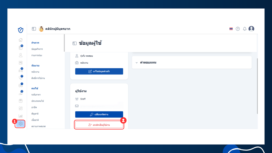 เมื่อคลิกที่ "ยกเลิกเป็นผู้ใช้งาน" พนักงานนั้นจะไม่สามารถเข้าใช้งานโปรแกรมได้อีก