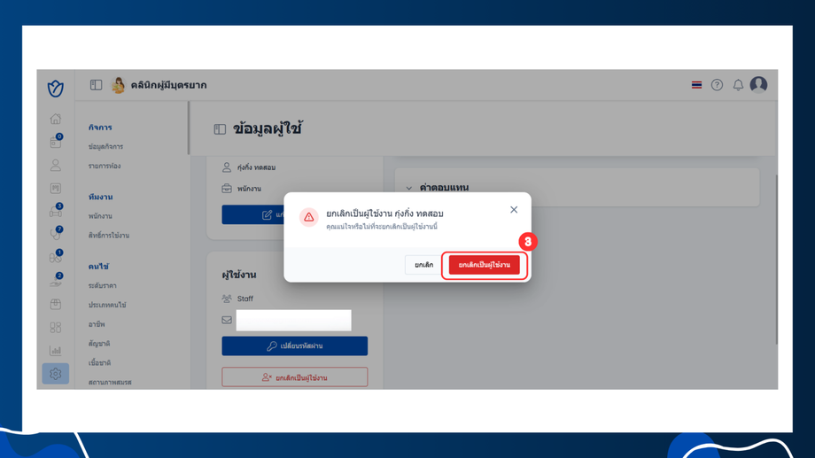 เลือกพนักงานที่ต้องการยกเลิกการเป็นผู้ใช้งาน และคลิก "ยกเลิกเป็นผู้ใช้งาน"