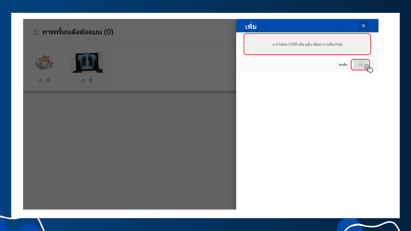 - ลากไฟล์มาวาง หรือ คลิกเพื่อทำการเลือกไฟล์