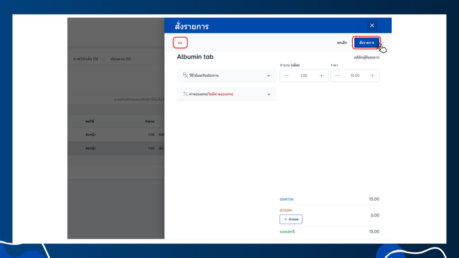 - สามรถ ลบ วิธีใช้ในแต่ละช่อง ของหน้าสั่งรายการได้