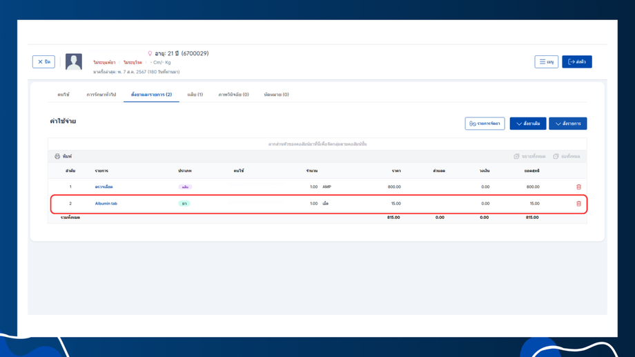 - สามารถเลือกคนไข้ที่ต้องการสั่งรายการได้