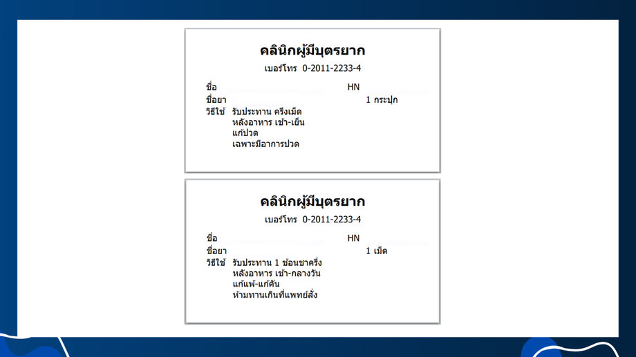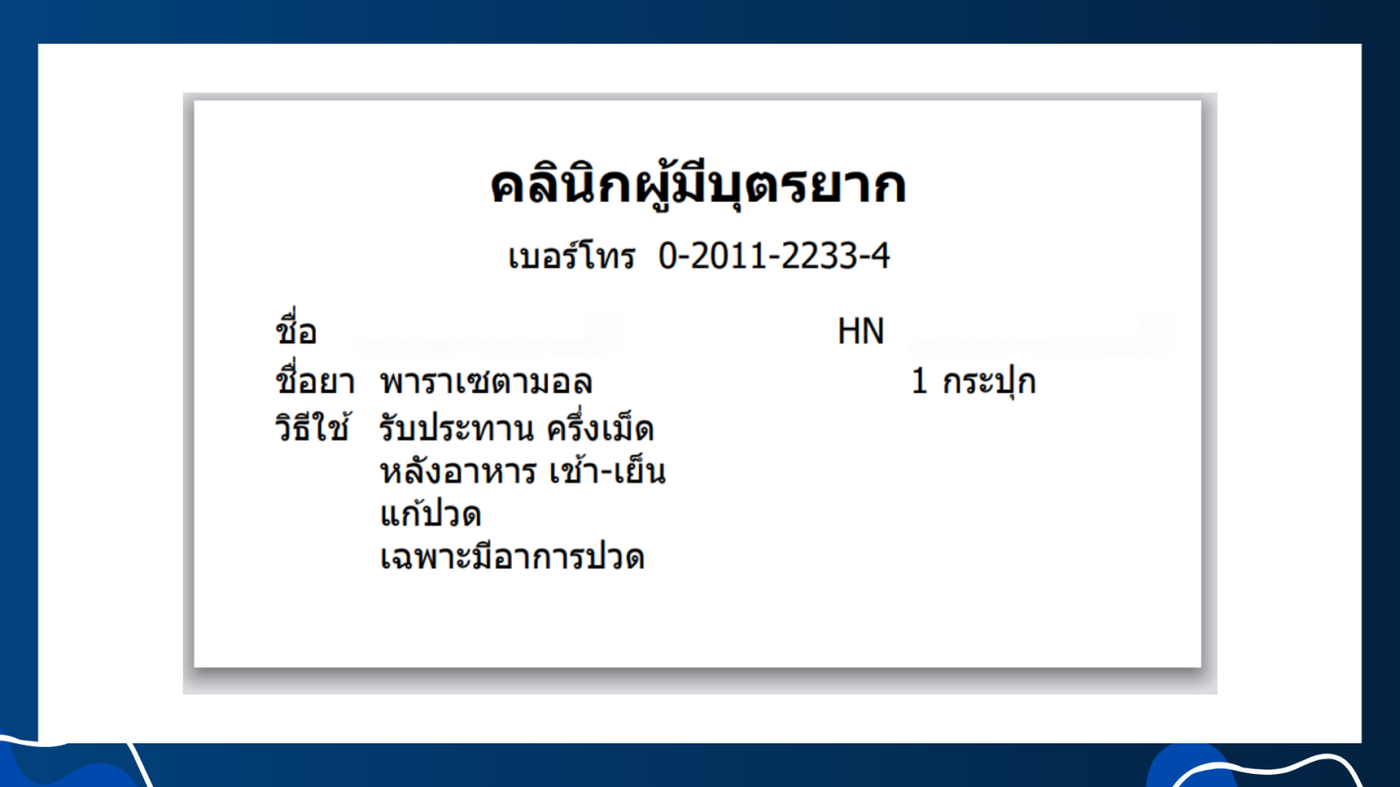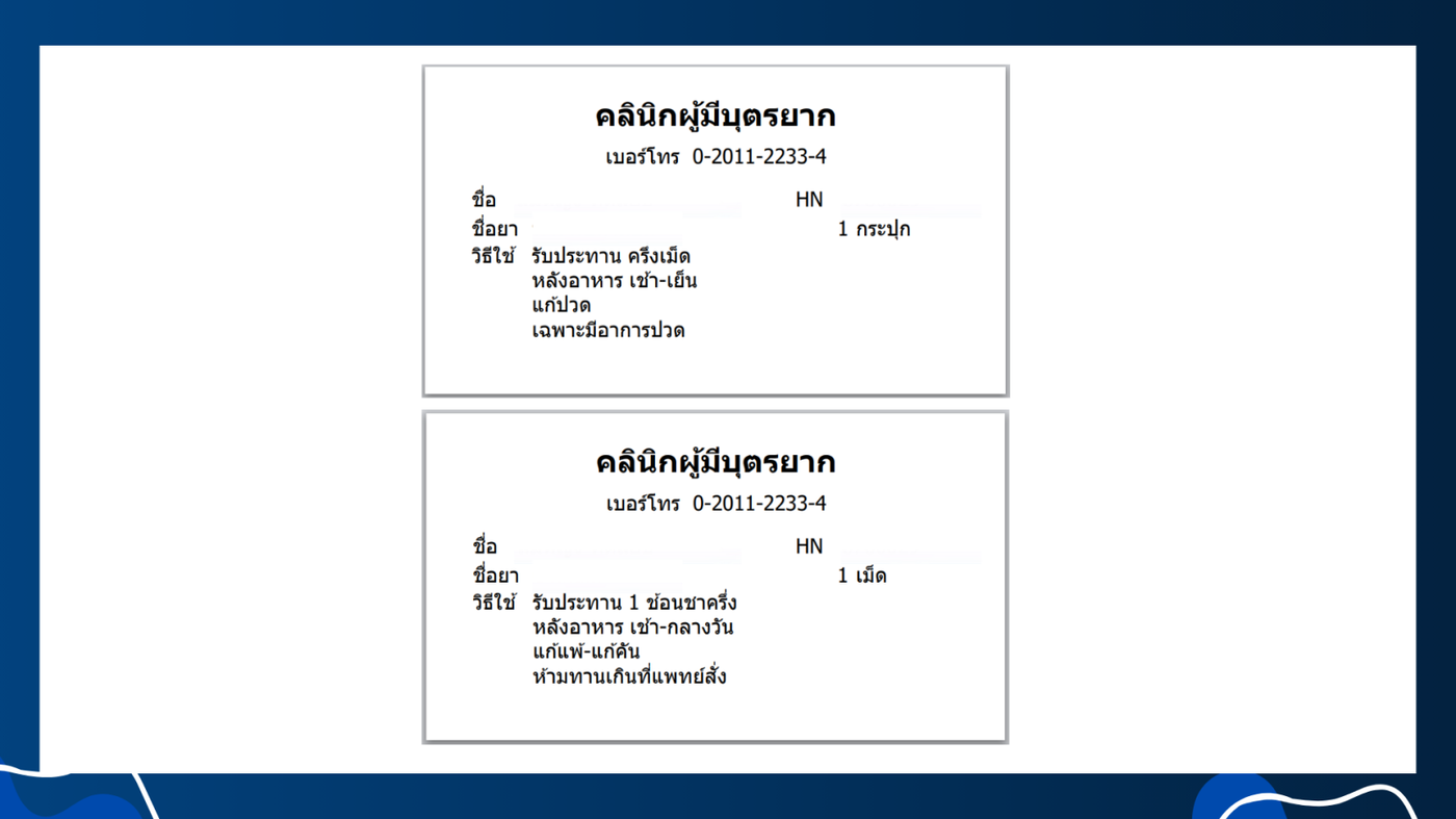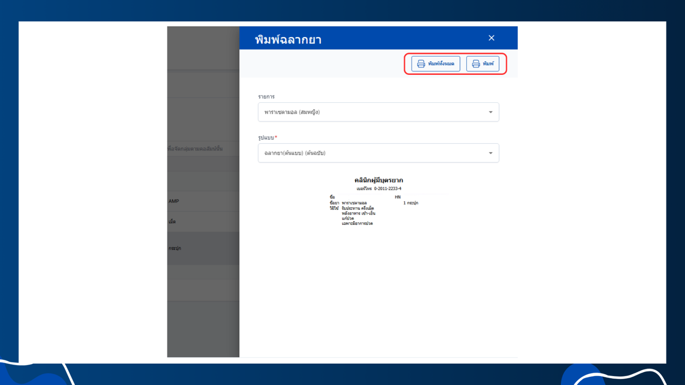 - สามารถพิมพ์ฉลากยาได้โดยคลิกที่รูปไอคอน เครื่องพิมพ์