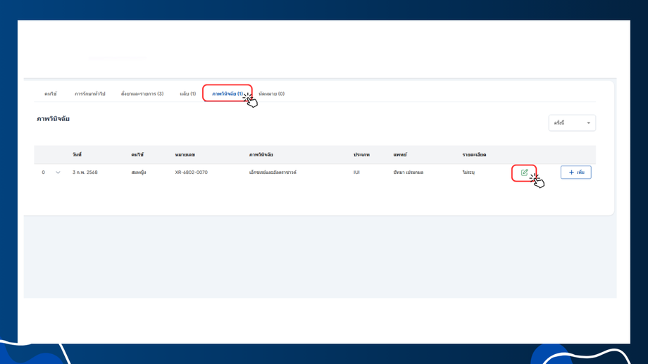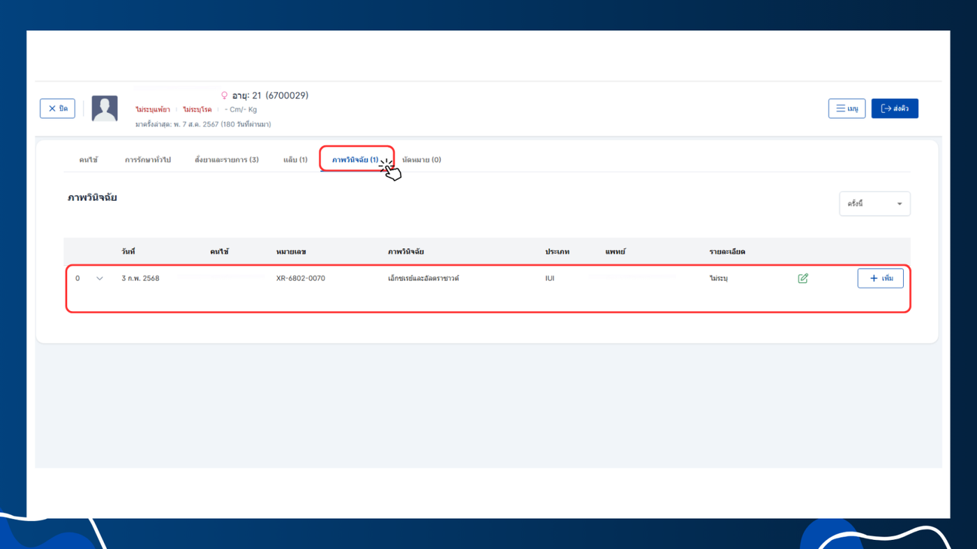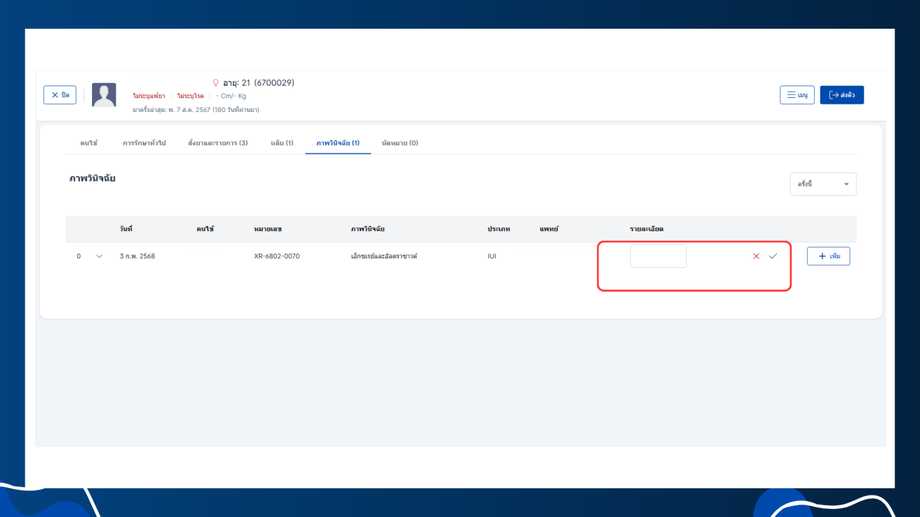 - ระบบจะบันทึกและแสดงรายการเอ็กซเรย์ในค่าใช้จ่ายและแสดงในเอ็กซเรย์